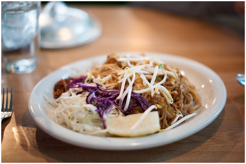 For entrees, we stuck with our tried and true: Pud Thai w/ chicken (me) and Orange Chicken served w/ white rice (Jasmine). Noms. It was good (not going to try and stretch the vocabulary on that one).